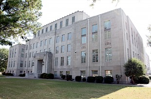 monument would not agree to the omission, and the statue was placed on the courthouse lawn. The Greenwood Courthouse, a more modern structure, is a living part of the community. On April 19, 1968, this building’s predecessor shared the fate of much of the rest of this county seat when it was demolished by a tornado. A bronze plaque on the present building demonstrates the determination of county residents with the words “This building embodies the continuous spirit of Sebastian County as its courthouses have risen from ashes and other disasters since the county was created in 1851.” The flag of the city of Greenwood is flown along with the Arkansas and American flags in front of the courthouse. The population of Sebastian County is 127,799 (2020 Census).